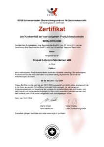 Unsere Produktion entspricht anerkannten Schweizer und europäischen Normen. Ein zentraler Nachweis dafür sind die Zertifizierungen durch den Schweizerischen Überwachungsverband für Gesteinsbaustoffe (SÜGB).